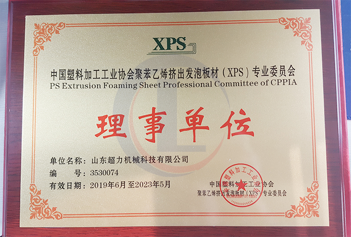 山東超力機(jī)械有限公司,憑借過硬的二氧化碳擠塑板(CO2-XPS)研發(fā)、生產(chǎn)技術(shù)與優(yōu)異的擠塑板設(shè)備質(zhì)量,被中國塑料加工工業(yè)協(xié)會聚苯乙烯擠出發(fā)泡板材(XPS)專業(yè)委員會授予協(xié)會理事單位。...